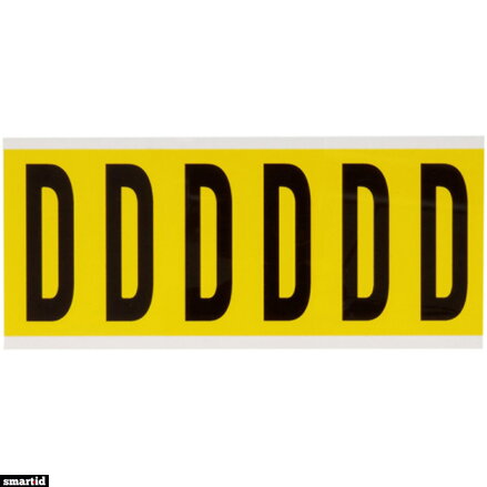 Samolepicí štítky Brady® 3450-D s čísly a písmeny pro vnitřní použití. Vyrobeny z odolné nylonové tkaniny B-500 s tlakově citlivým lepidlem, které spolehlivě přilne k jakémukoliv čistému a suchému povrchu. Štítky lze aplikovat napevno i opakovaně přemístit – vaše označení zůstane na místě, dokud jej sami nezměníte. Autoklávovatelné, vhodné pro kryogenní skladování a neobsahují halogeny. Velikost 38 × 89 mm, černý potisk na žlutém podkladu. Minimální objednávka: 25 karet od každé varianty.