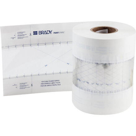 Šablona Brady® PaintStripe B-518 je ideální pro značení čistých, leštěných podlah s lesklým povrchem. Díky nízké přilnavosti snadno drží na podkladu a umožňuje přesné zarovnání podle požadovaného rozvržení. Jedním tahem zakryje obě strany linie, což výrazně urychluje práci. Tištěné značky na šabloně zajišťují snadné měření vzdáleností i rychlé vyrovnání 90° rohů. Aplikaci zvládne pohodlně jedna osoba. Vyrobena z průhledného bílého polypropylenu, šířka 101,6 mm, délka 152,4 m – perfektní volba pro efektivní a čisté značení podlah ve skladech, halách i provozech.