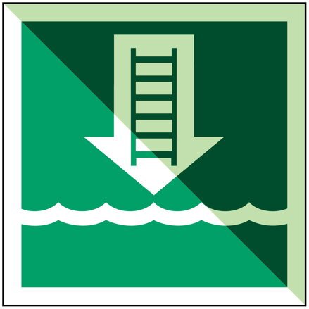 Fotoluminiscenční značení Brady® IMO pro lodní evakuační skluz, rozměry 150 x 150 mm, žlutozelená barva. Vyrobeno z vysoce odolného polypropylenu třídy B se schopností svítit ve tmě pro maximální viditelnost během nouzových situací. Ideální pro identifikaci evakuačních tras a zvyšování bezpečnosti na palubě lodí dle mezinárodních námořních standardů. Snadná instalace na různé povrchy, vhodné pro dlouhodobé použití v náročných podmínkách.