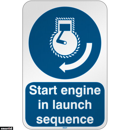 Bezpečnostní značka Brady® ISO "Start engine in launch sequence" v modré na bílém provedení slouží k jasné identifikaci a zvýšení bezpečnosti ve vašem provozu. Rozměry 390 x 590 mm zajišťují vysokou viditelnost i na větší vzdálenost. Vyrobena z laminované reflexní fólie, která odolává náročným podmínkám v námořním prostředí a zajišťuje dlouhodobou čitelnost i při slabém osvětlení. Ideální pro lodě, přístavy i průmyslové objekty, kde je nutná mezinárodní srozumitelnost a splnění norem ISO a IMO. Snadná aplikace na různé povrchy díky pevné samolepicí vrstvě. Popis v angličtině.