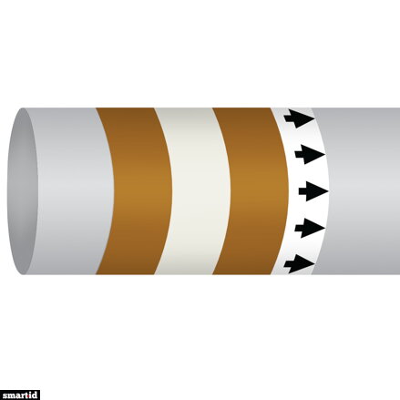 Samolepicí značkovač potrubí Brady® splňuje normu ISO 14726 pro označování potrubí na lodích, jachtách, člunech, ropných plošinách a dalších mořských stavbách. Tento značkovač je určen pro paliva – plynové turbíny, v barevném provedení hnědá/bílá/hnědá o rozměru 127 mm x 30 m. Vyroben z odolného laminovaného polyesteru, poskytuje jasné a trvanlivé označení obsahu a funkce potrubí v souladu s mezinárodními standardy pro bezpečnost a přehlednost na moři. Ideální pro značení trubek a ventilů v náročných mořských podmínkách.