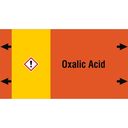 Vysoce odolné potrubní značení Brady® ISO 20560 pro kyselinu šťavelovou splňuje mezinárodní normu ISO 20560 – jeden ze tří předních světových standardů pro identifikaci obsahu potrubí. Černý text na oranžovém podkladu zajišťuje maximální viditelnost a rychlou orientaci. Předvybrané symboly CLP/GHS upozorňují na rizika spojená s obsahem potrubí. Laminovaný polyester B-7541 odolává extrémním teplotám, chemikáliím i palivům. Rozměr 165 × 90 mm. Ideální pro bezpečné a přehledné označení potrubí a ventilů.
