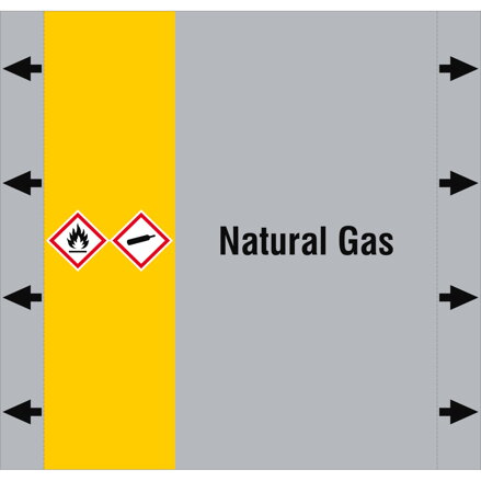 Vysoce odolný potrubní štítek Brady® ISO 20560 pro označení plynového vedení v souladu s mezinárodní normou ISO 20560 – jedním ze tří celosvětově uznávaných standardů pro identifikaci obsahu potrubí. Jasné černé značení na šedém podkladu umožňuje snadnou vizualizaci i rychlou identifikaci obsahu potrubí a upozorňuje na možná rizika. Předvybrané symboly CLP/GHS podle typu plynu zajišťují bezpečnost a soulad s legislativou. Odolný laminovaný polyester B-7541 chrání štítek před extrémními teplotami, chemikáliemi i palivy. Rozměry 220 × 210 mm. Vhodné pro označování potrubí a ventilů.