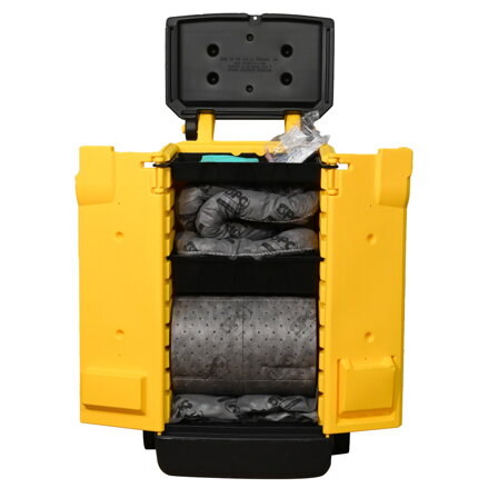 Kompaktní mobilní sorpční sada Brady® SPC® SKA-CART pro rychlý zásah při úniku průmyslových kapalin i údržbových pracích. Odolný žlutý vozík s dvojitými dveřmi zajišťuje snadný přístup a chrání sorpční materiály před nečistotami, vlhkostí a poškozením. Vnitřní police a přihrádky udržují vybavení přehledně uspořádané. Díky kolečkům lze snadno přepravovat úzkými uličkami i dveřmi, a to jak uvnitř, tak venku v areálu. Ideální řešení pro efektivní kontrolu rozlitých kapalin kdekoliv ve vašem provozu.