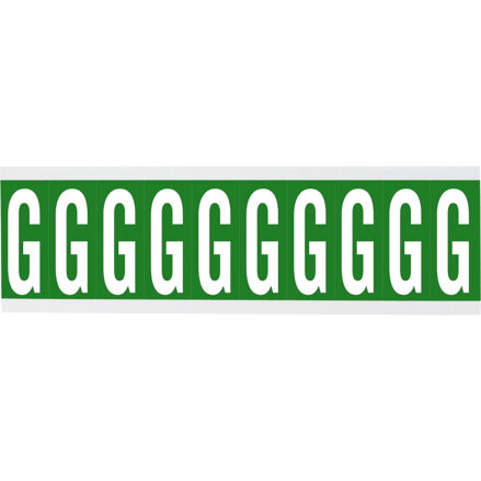 Samolepicí štítky Brady® CNL2G G z nylonové textilie B-499 s bílými čísly a písmeny na zeleném podkladu jsou vhodné pro vnitřní použití. Lze je aplikovat napevno i opakovaně přemístit – po nalepení zůstávají čísla a písmena na místě, dokud je nechcete změnit. Díky citlivému lepidlu pevně drží na každém čistém a suchém povrchu. Rozměr štítku 22 × 57 mm, minimální objednávka 25 karet od jedné varianty.