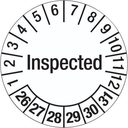 Inspekční štítky Brady® s průměrem 20 mm v provedení černá na bílém umožňují snadné a přehledné označení data kontroly strojů, zařízení či hasicích přístrojů. Vyrobeny z odolného polyolefinu a vybavené funkcí proti neoprávněné manipulaci, jsou ideální pro pravidelnou evidenci a kontrolu inventáře v průmyslovém prostředí.